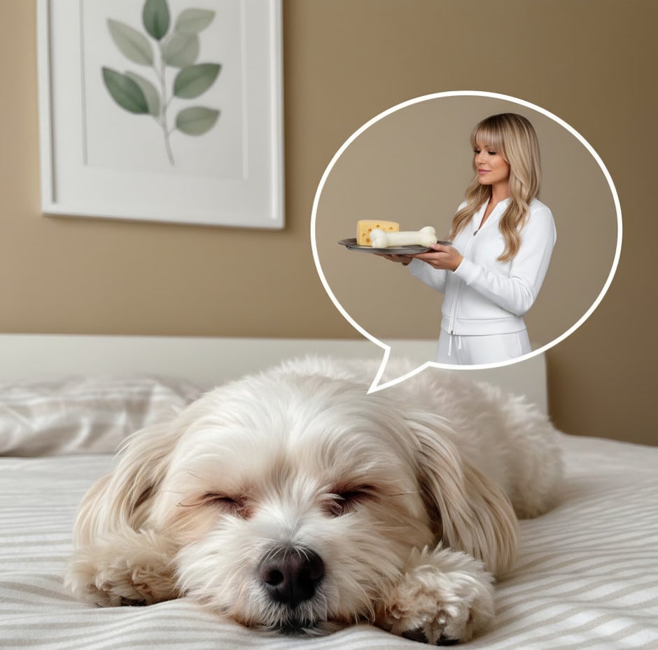 In der REM-Schlafphase verarbeiten Hunde ihre Erlebnisse vom Tag – und da geht es nicht nur ums Rennen, Bellen oder Jagen im Traum, sondern oft auch ums Fressen. Kleine Kaubewegungen oder schmatzende Geräusche sind also ganz normal und ein Zeichen dafür, dass der Vierbeiner tief und fest träumt.