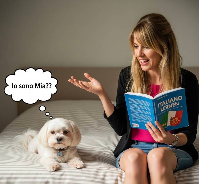 Ich meine… wer braucht bitte eine Sprache, in der „Leckerli“ bocconcini heißt und die Schwimmweste giubbotto di salvataggio? Na gut, vielleicht ist’s ganz nett, wenn Frauchen sich durchwurstelt – aber wehe, die Leckerlis sind leer oder der Käse kommt nicht rechtzeitig.