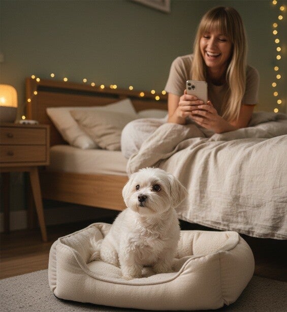 Sie schreiben, kichern, schicken Sprachnachrichten… und Frauchen liegt daneben und wackelt vor Lachen, während ich denke: